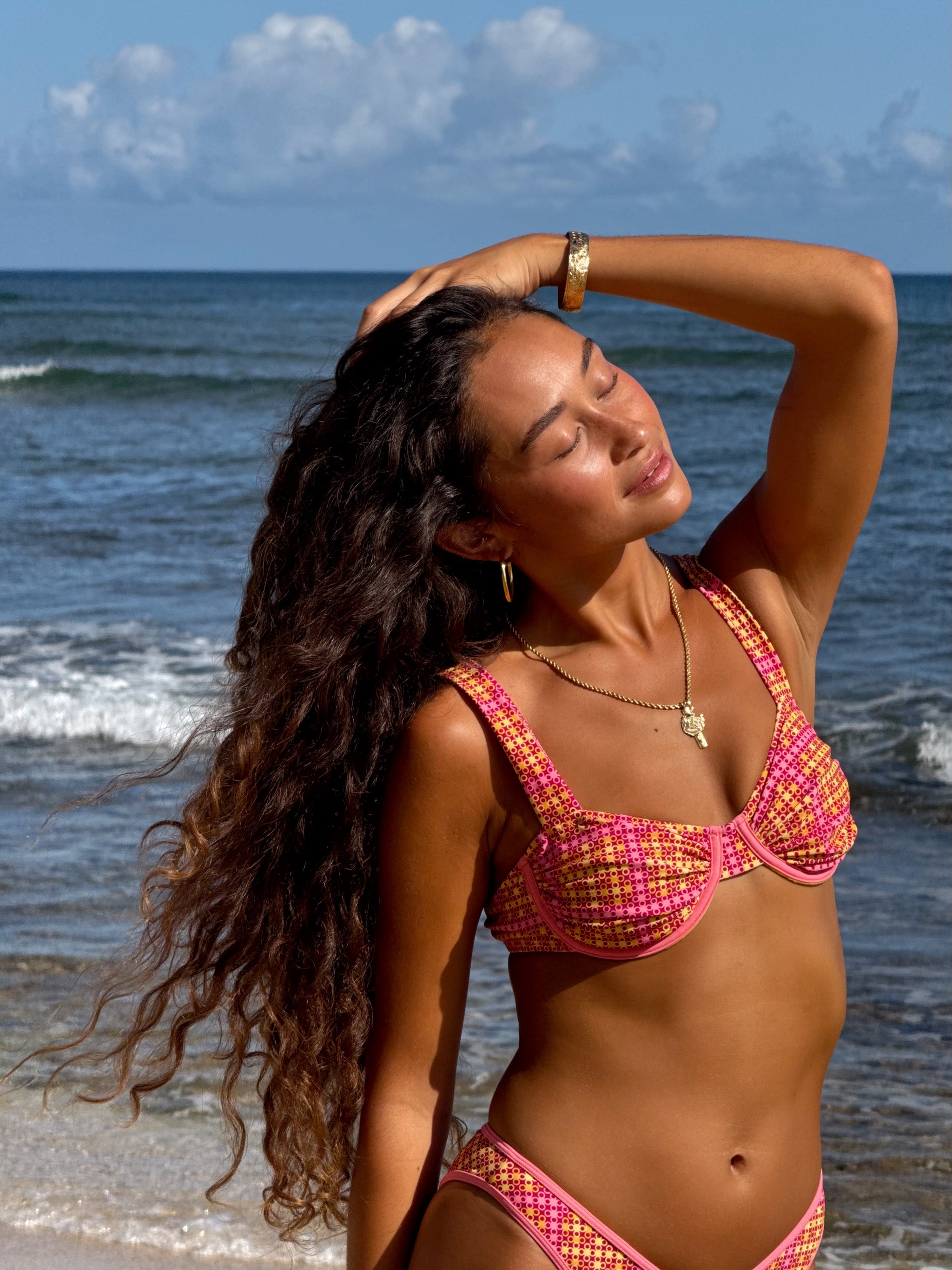 A supportive & sherbet pink-toned bikini, the Charlotte Ruched Underwire Set is the bikini you’ll reach for every sunset ocean dunk.
