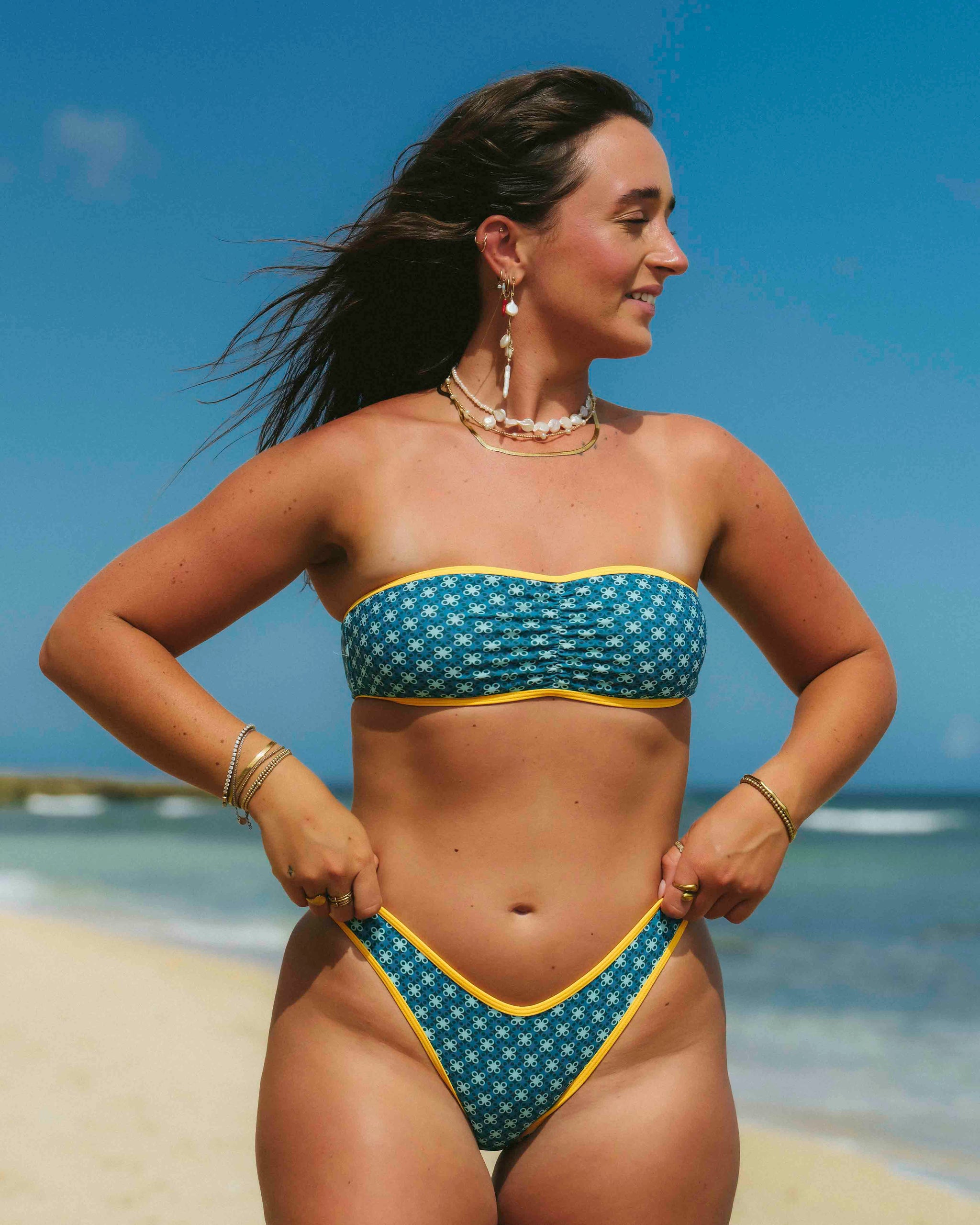 A minimalist top style & maximalist pattern are what make the Lacy Cinched Bandeau Top the bikini we can’t leave without for every future beach trip.