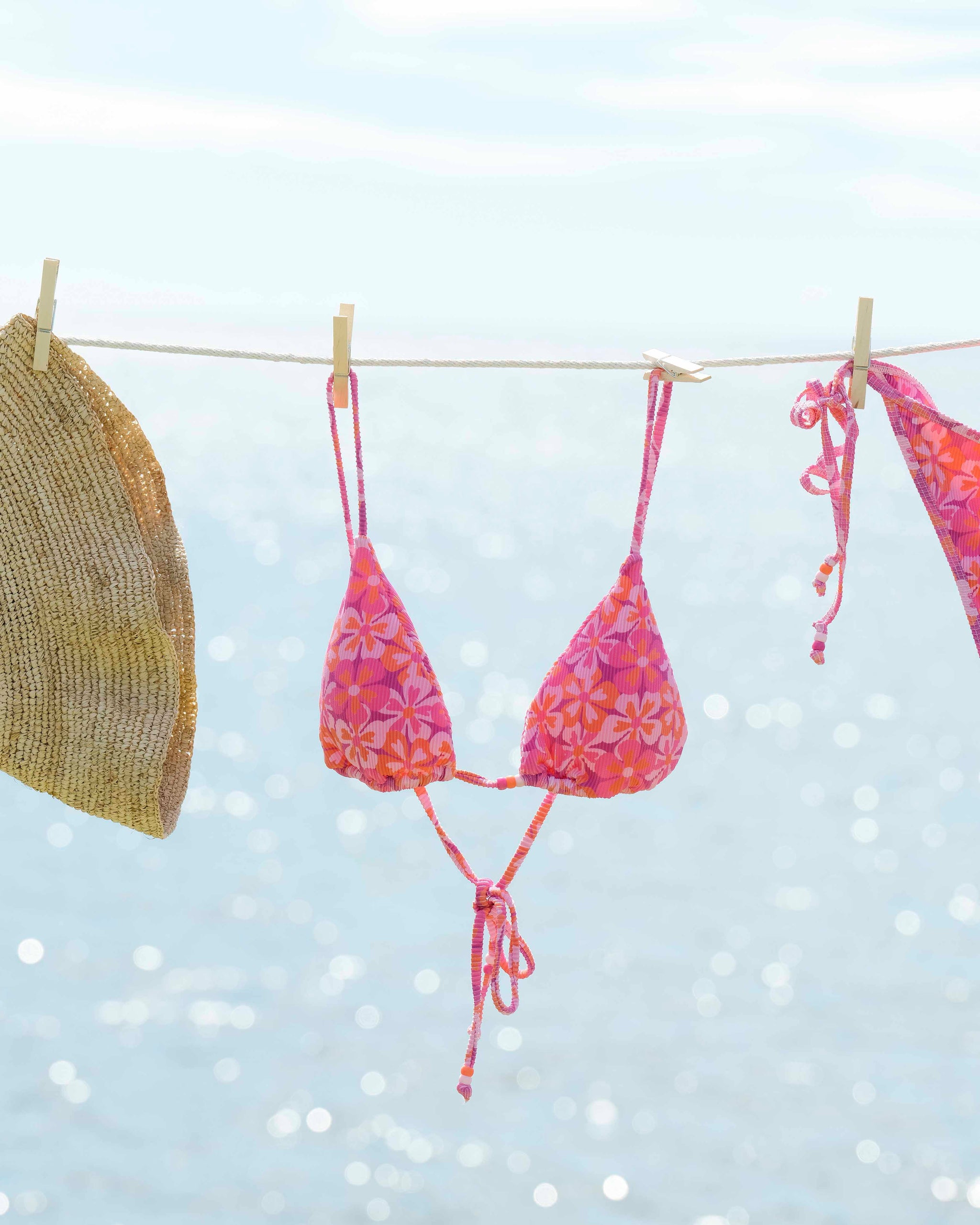 A timeless swim essential. The Malibu Ribbed Triangle Top offers adjustable coverage in our soft ribbed fabric, finished with colorful bead accents that highlight the cheerful retro-inspired floral print.