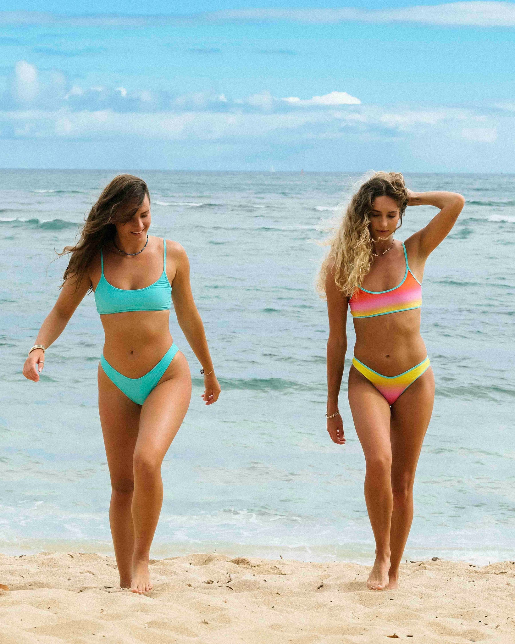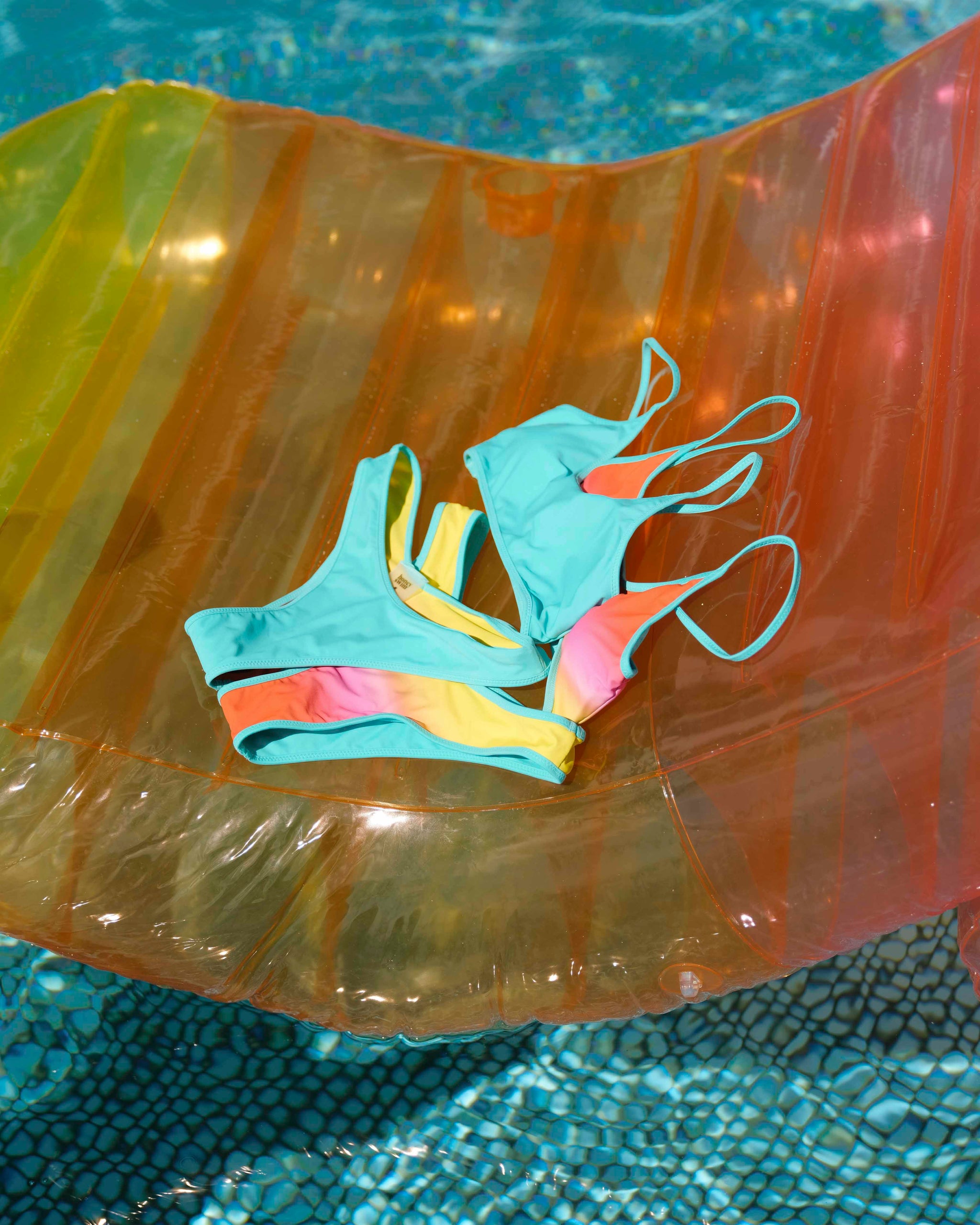 Vacation mode: on 🌺 The Mai Tai Bralette Set features a vibrant sunset-inspired gradient on one side and a fresh turquoise solid on the other for two effortlessly fun looks in one. Adjustable straps make it an easy everyday favorite.