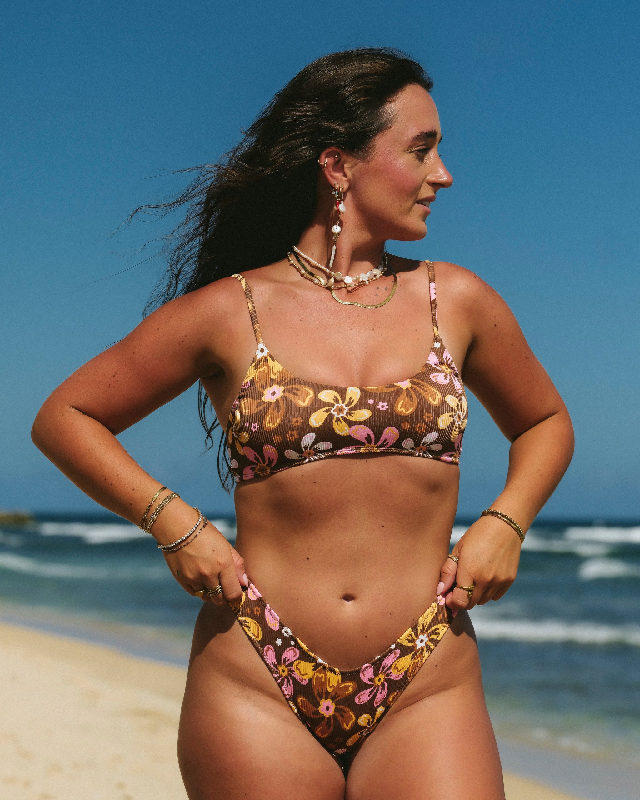 With adjustable straps and an ultra-comfy ribbed material the Margaret Ribbed Bralette Set is the quintessential ✨it girl✨ bikini. Whether you’re a fan of neutrals or colorful vibes this bikini is about to be your go-to.